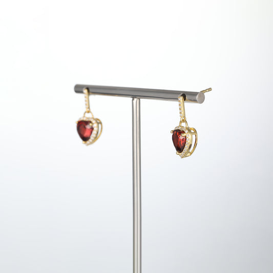 Solid Gold Red Garnet Heart Lock Earrings
