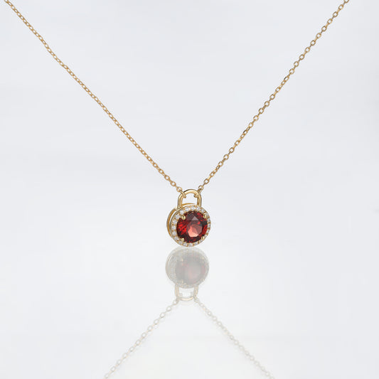 Solid Gold Red Garnet Lock Pendant