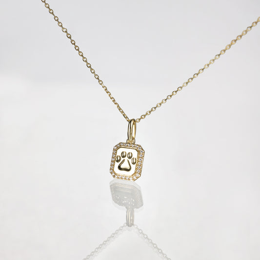 Solid Gold Signet Paw Tag Pendant
