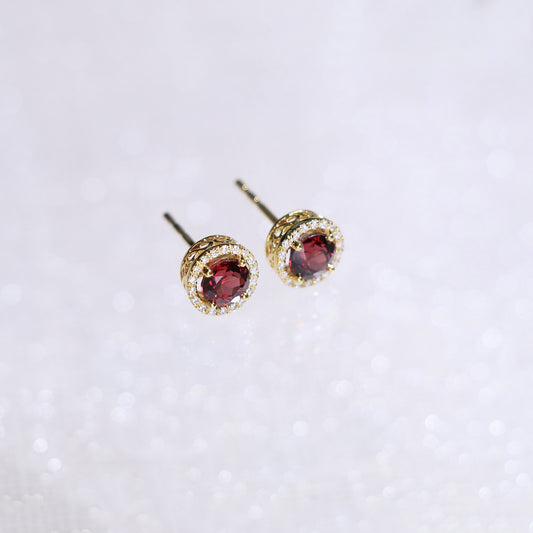 Garnet Halo Diamond Earrings