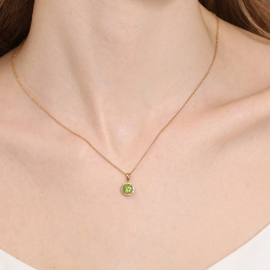 Peridot Halo Diamond Pendant