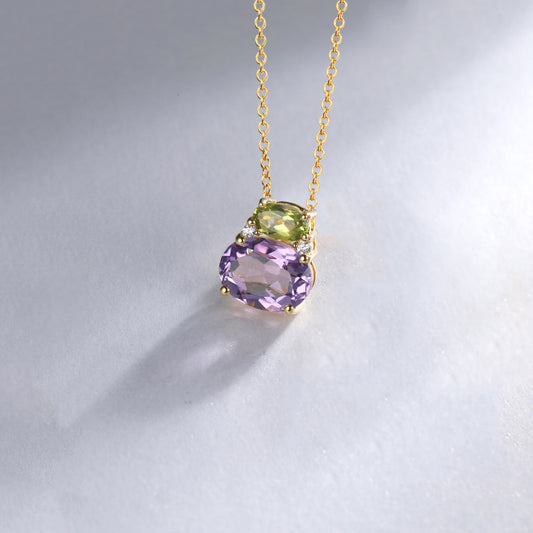 Peridot Amethyst Two Stone Necklace