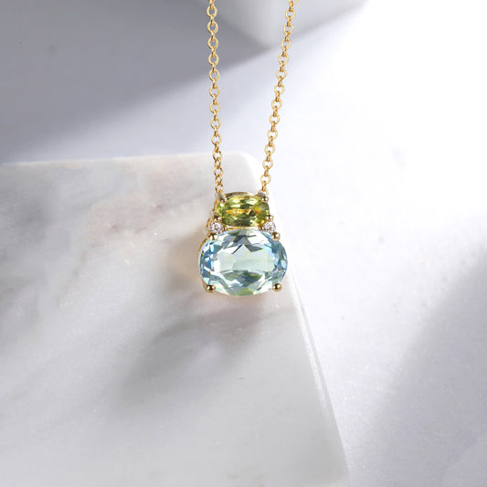 Peridot Topaz Two Stone Necklace