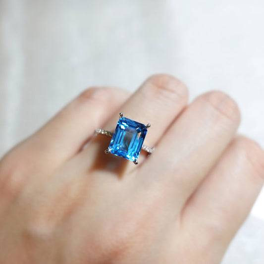 Emerald Cut Swiss Blue Topaz Ring