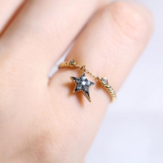Gold Blue Topaz Star Chain Ring