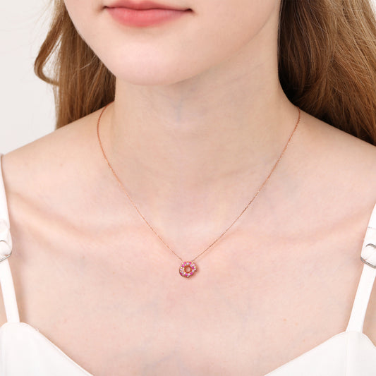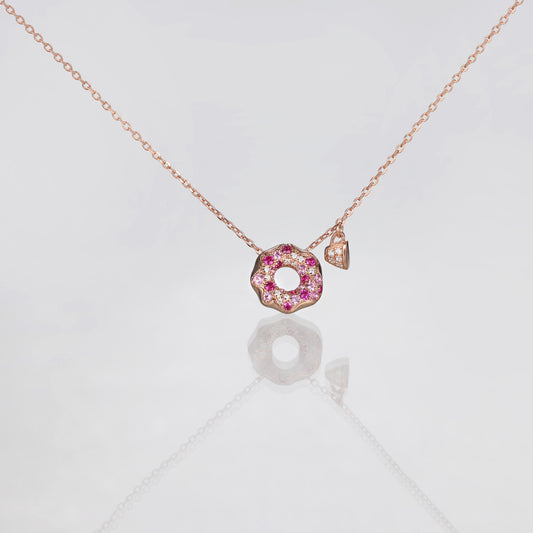 Lab Pink Sapphire Donut Tea Cup Necklace