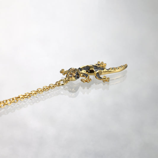 Gold Brass Black Lizard Diamond Bracelet