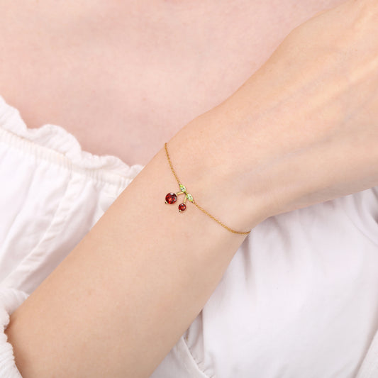 Garnet Peridot Cherry Charm Bracelet