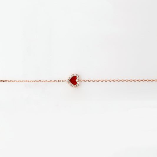 Rose Gold Red Agate Heart Charm Bracelet