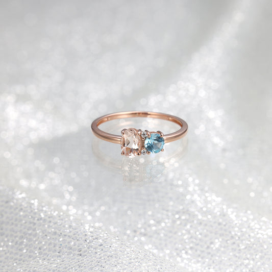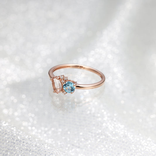 Round Blue Topaz Oval Morganite Star Diamond Ring