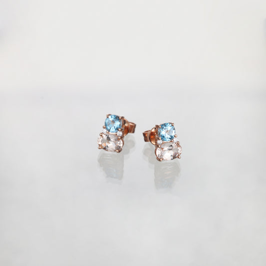Blue Topaz Morganite Diamond Star Diamond Stud
