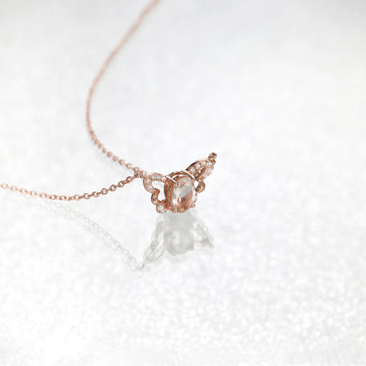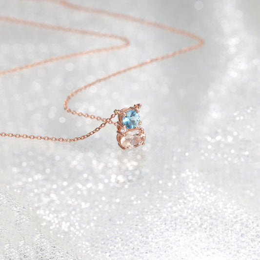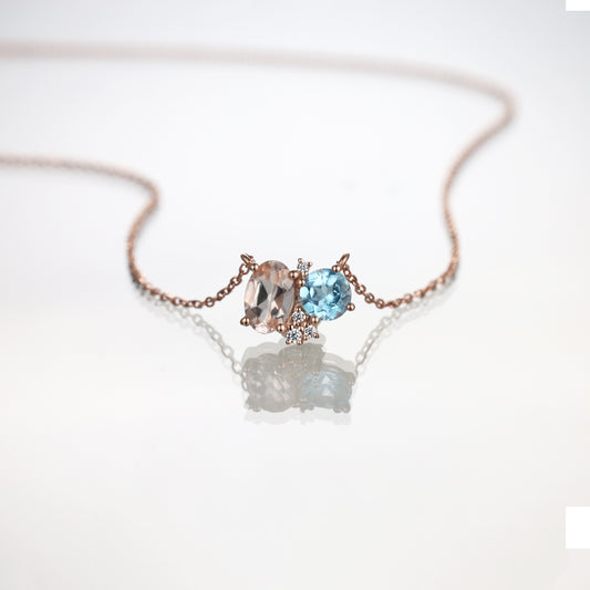 Blue Topaz Peach Morganite Star Diamond Necklace
