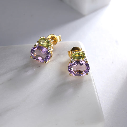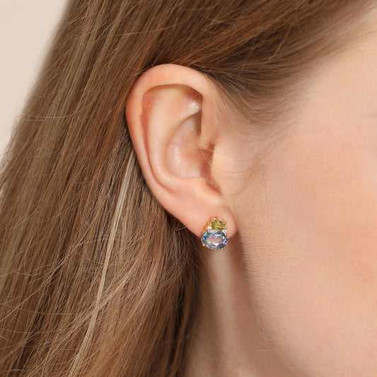 Blue Topaz Morganite Diamond Star Diamond Stud