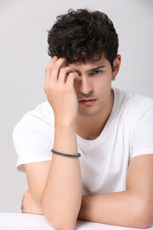 Mens Bracelet with Wheat Chain Gunmetal Plated (B0011)