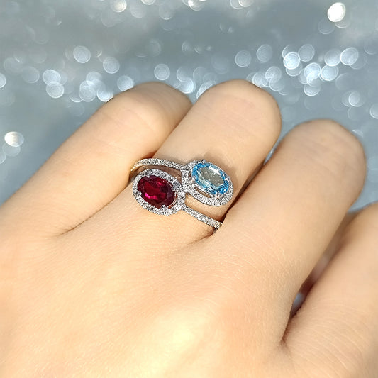 Silver Lab Grown Ruby V Shape Engagement Ring