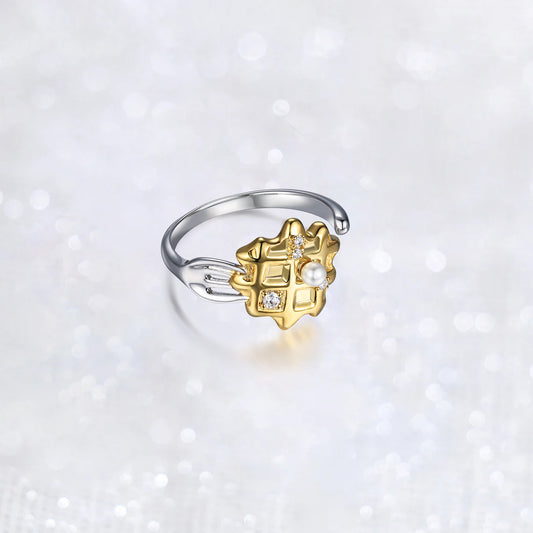 Shell Pearl Diamonds Waffles Fork Open Ring