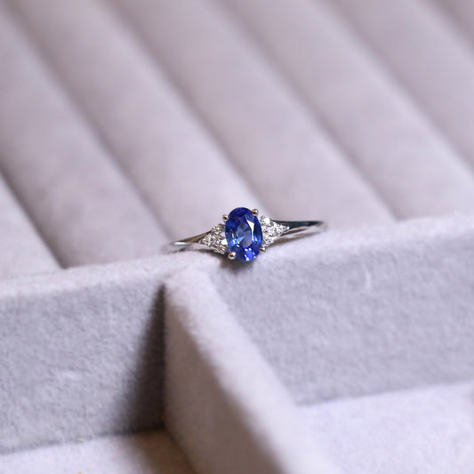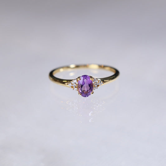 Silver 6x4mm Natural Amethyst Engagement Ring