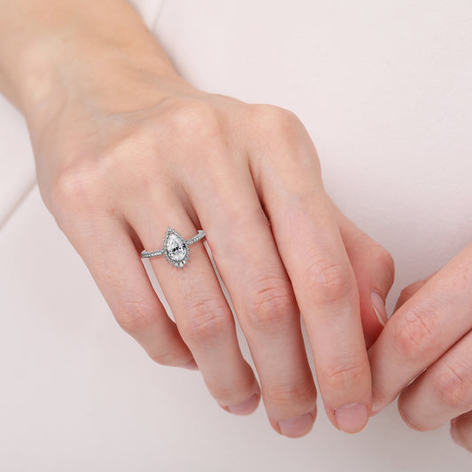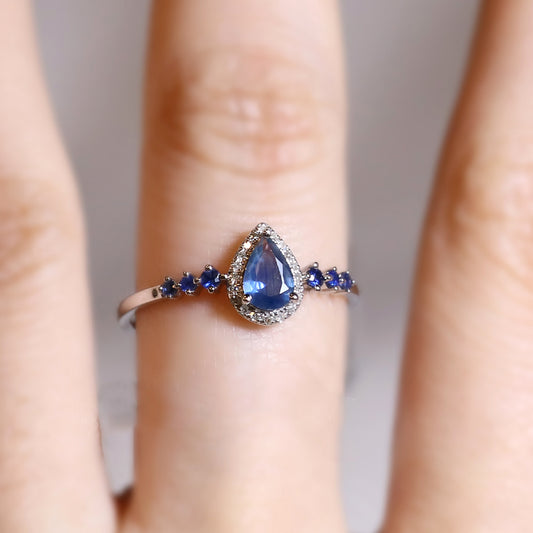 Pear Sapphire Halo Ring