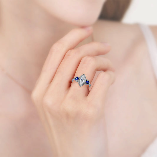 Marquise Zirconia Sapphire Halo Engagement Ring