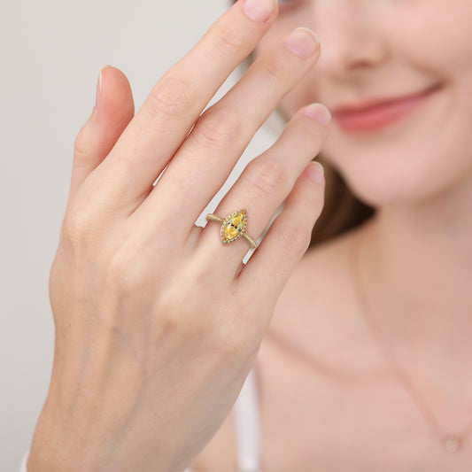 3.40 ct Yellow Marquise Shape Stone Halo Ring