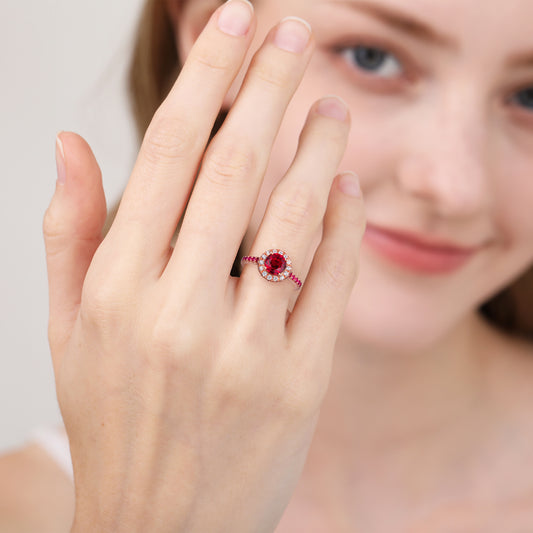 Round Lab Grown Ruby Halo Engagement Ring