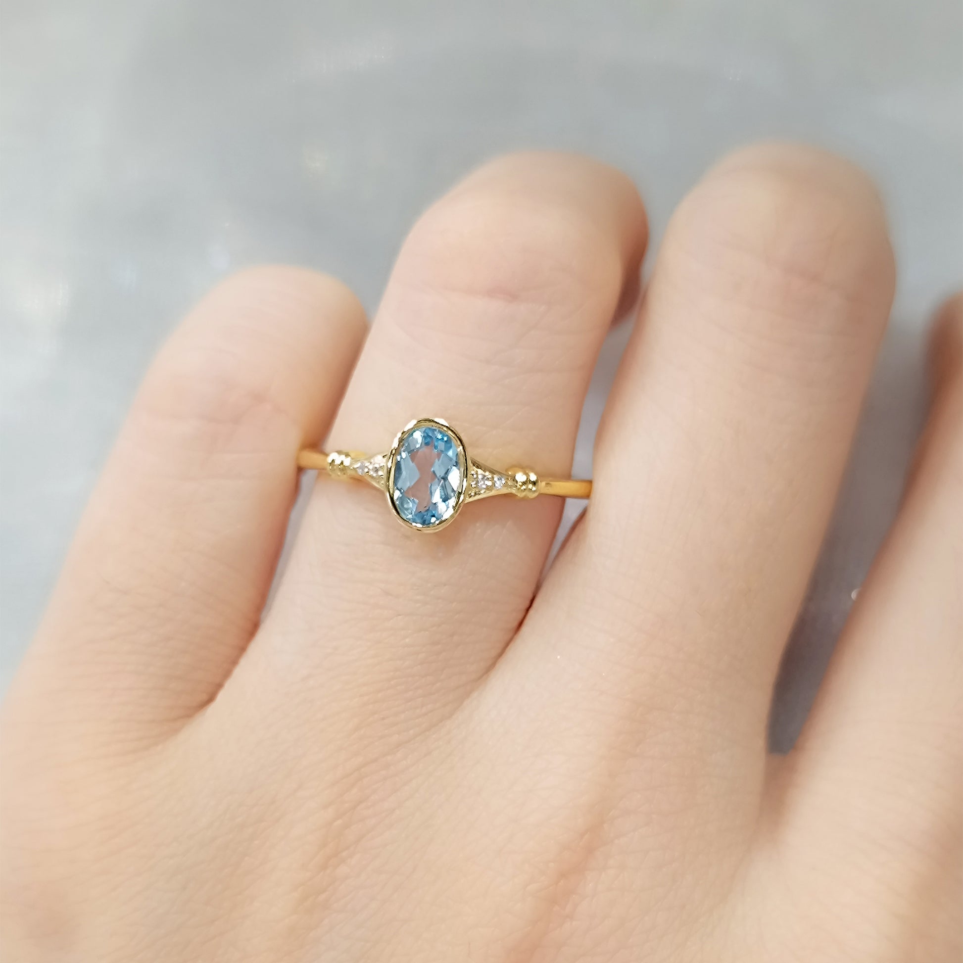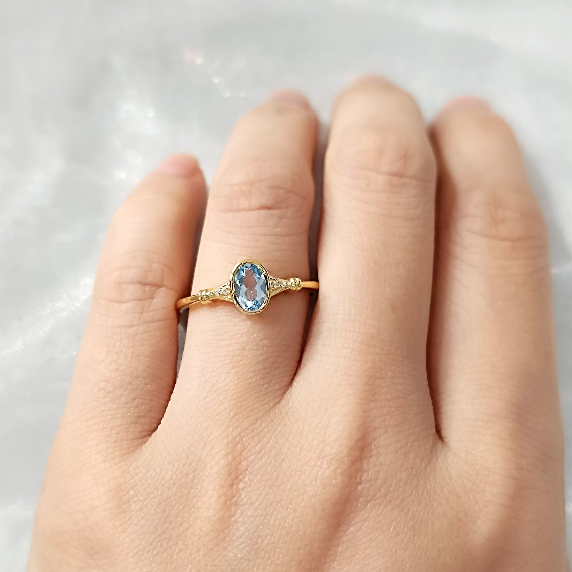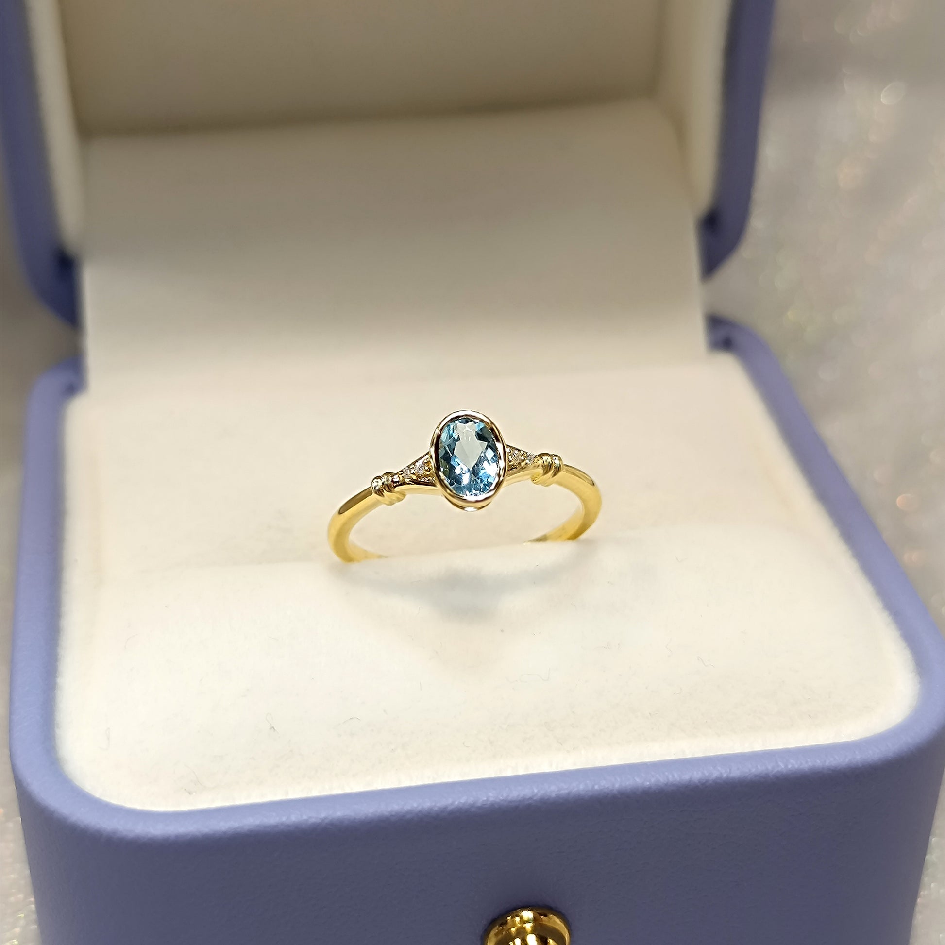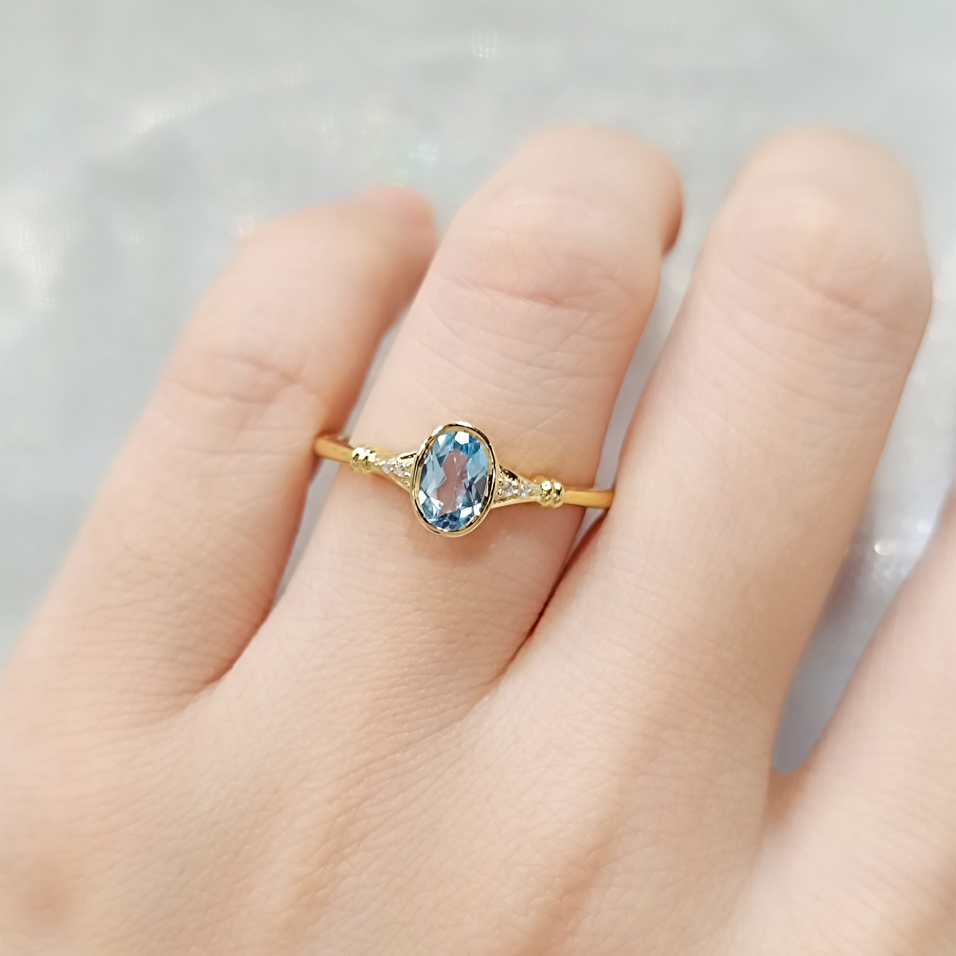 Main Stone: Natural Blue Topaz, Oval, 6x4 mm, 1 pc